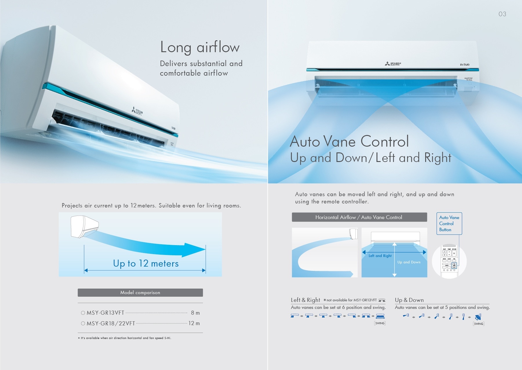 MSY-GR SERIES IS A NEW ARRIVAL WITH MOST EFFICIENT COOLING TEMPERATURES WITH QUIET OPERATION WIDE AND LONG AIR FLOW IN ALL DIRECTIONS.